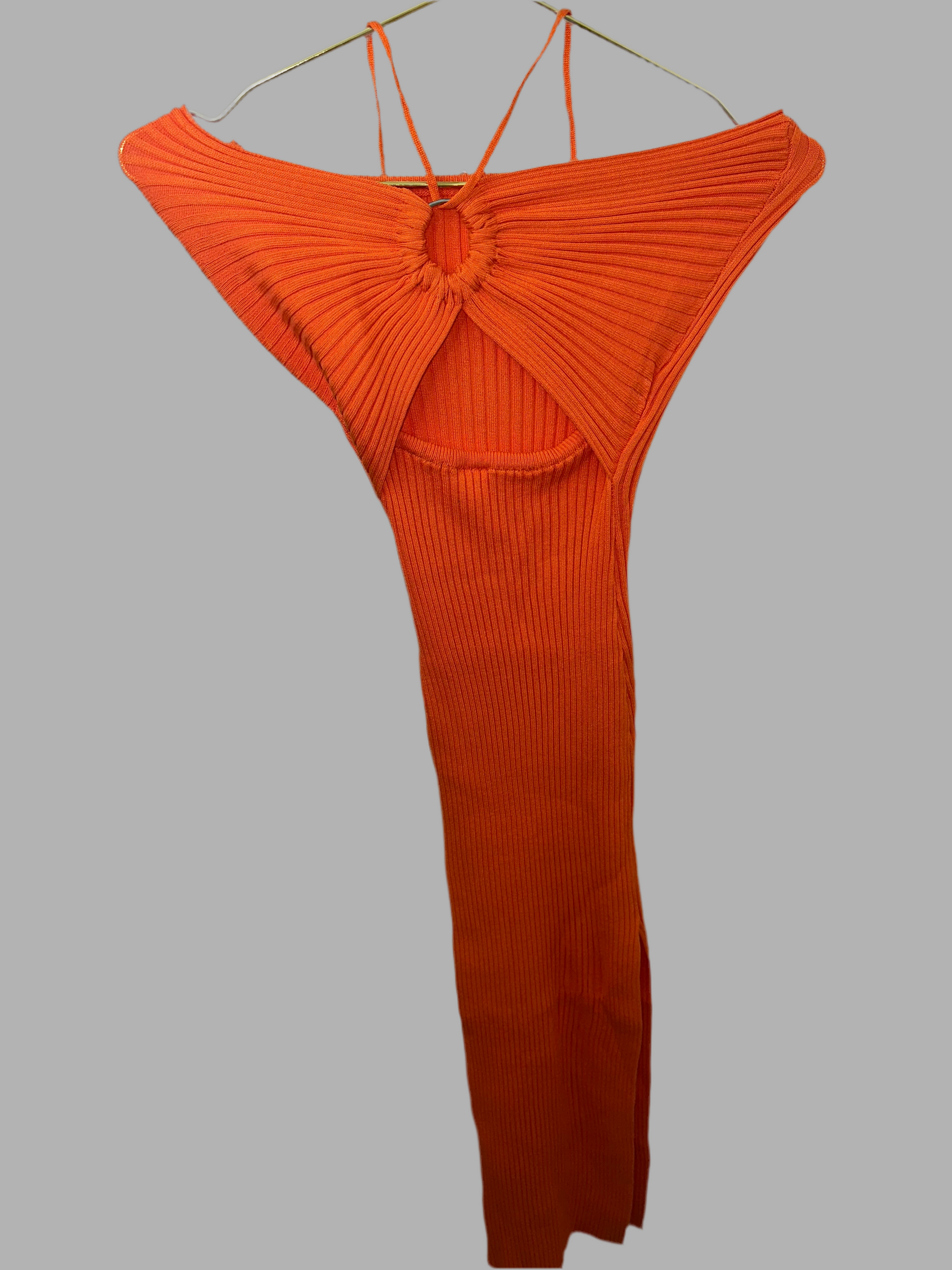 “Destaca con estilo con nuestro ‘Vestido Sunset Glow’. Su diseño cut-out frontal, tirantes delgados y tela acanalada lo hacen perfecto para lucir elegante y atrevida. Ideal para una salida especial o una noche de verano. ¡Sé el centro de atención!”